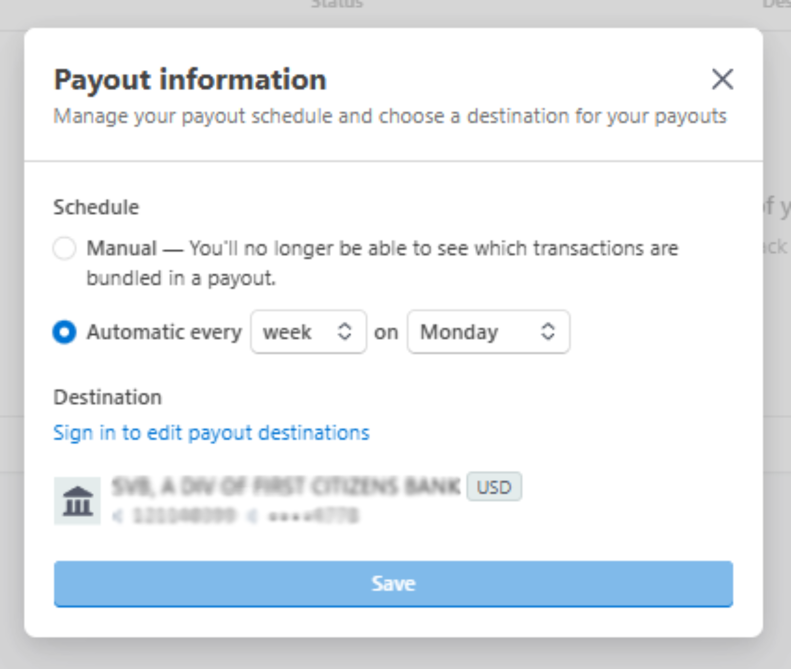 Updating your payout settings